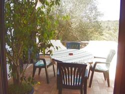 großen Terrasse mit Blick auf die umliegenden Hügel –